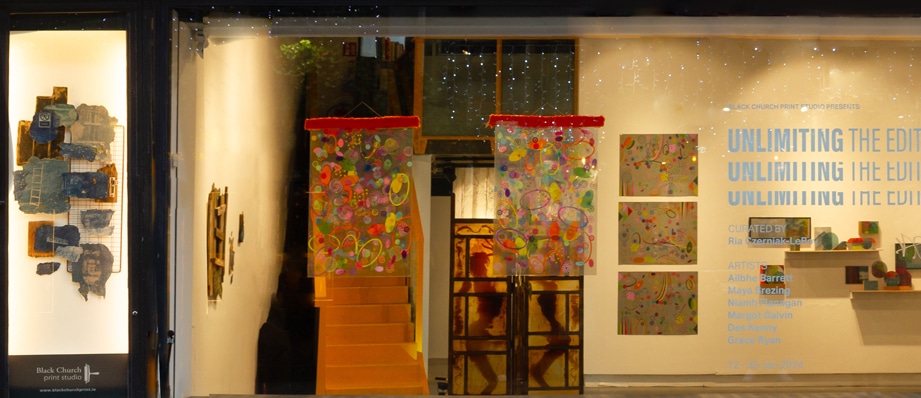 As contemporary print practices continue to expand beyond the boundaries of tradition, everything from the formal and material qualities of the medium, to the social and economic status of Print have become the subject of re-evaluation. In the practices of Ailbhe Barrett, Maya Brezing, Niamh Flanagan, Margot Galvin, Des Kenny and Grace Ryan, it is the concept of the limited edition itself that is being expanded. Divorced from the rarity value system that governs the formal edition, the matrix’s potential to iterate and generate ad infinitum becomes an exciting prospect, one that allows these printmakers to build and fragment, collage and extract, tell stories and challenge existing narratives.